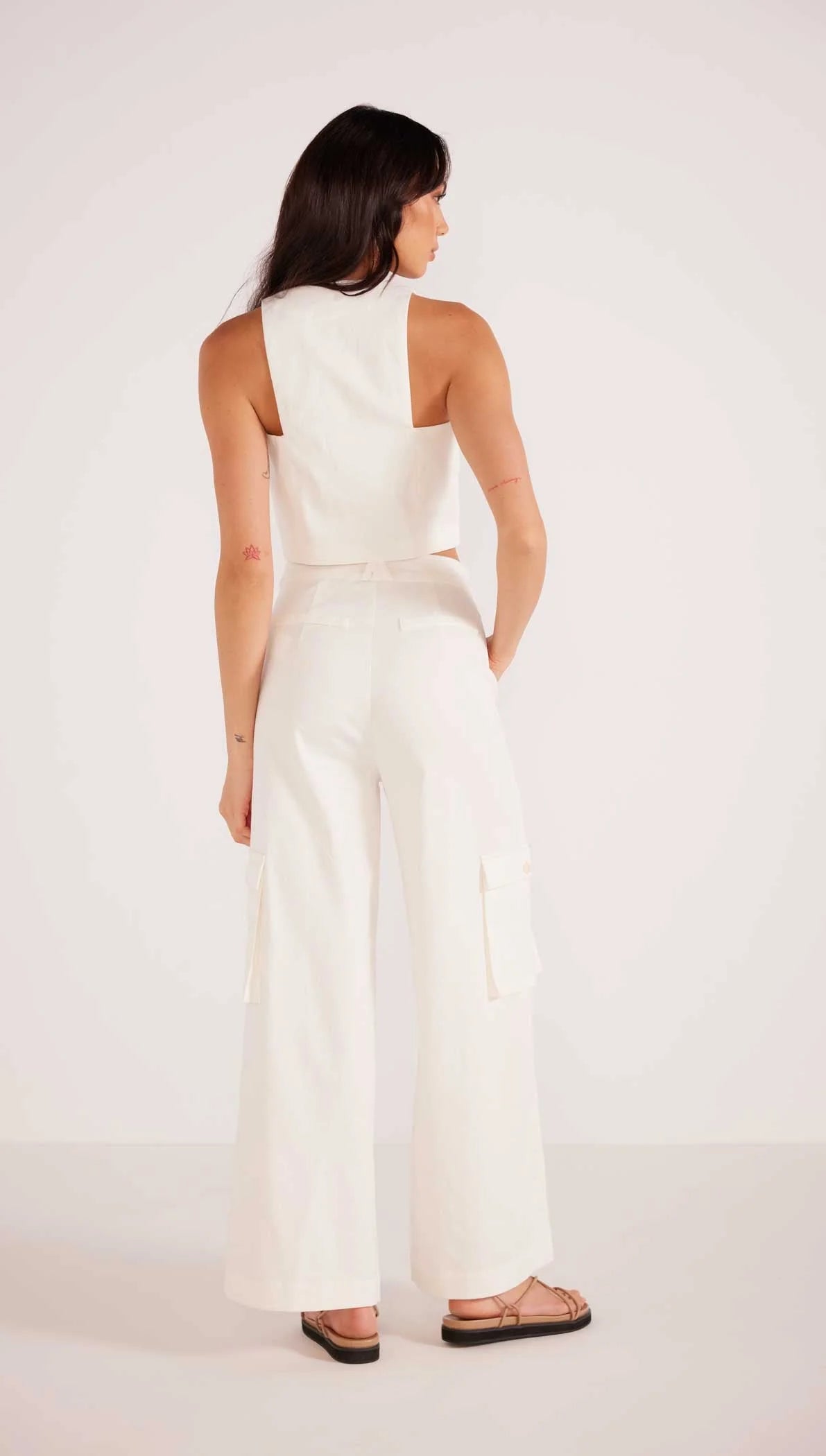 The Lottie Halter Neck Vest offers a stylish and modern aesthetic. Made with high-quality cotton drill, this cropped vest features a flattering halter neckline and a double breast design. Perfectly paired with the Lottie Cargo Pants for a chic and versatile look.